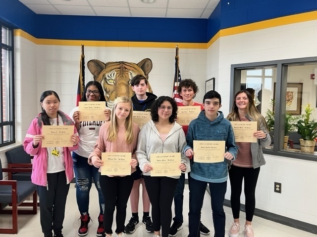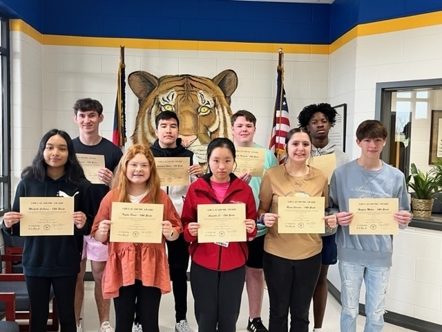 Front Row: Fiona Li, Morgan Dove, Sophia Eligio, and Angel Aguilar Ferreyra Back Row: Taylor Walton, Ethan Hardy, Alex Pharr and Hannah Grace Moon Not Pictured: Austin Simmons and Jonathan Conard